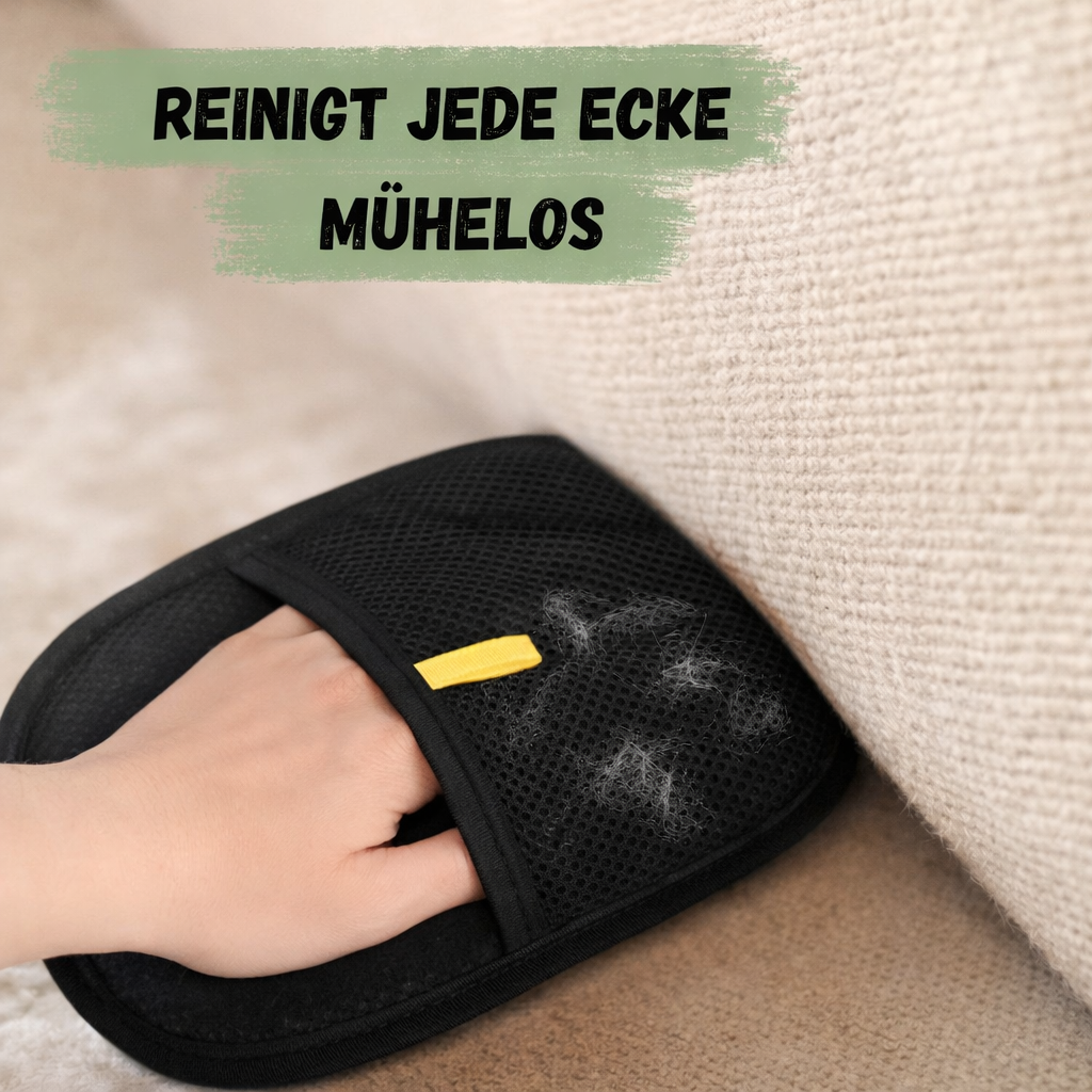 Der Handschuh lässt sich ganz einfach reinigen: Entfernen Sie die Haare per Hand oder spülen Sie ihn unter warmem Wasser ab.